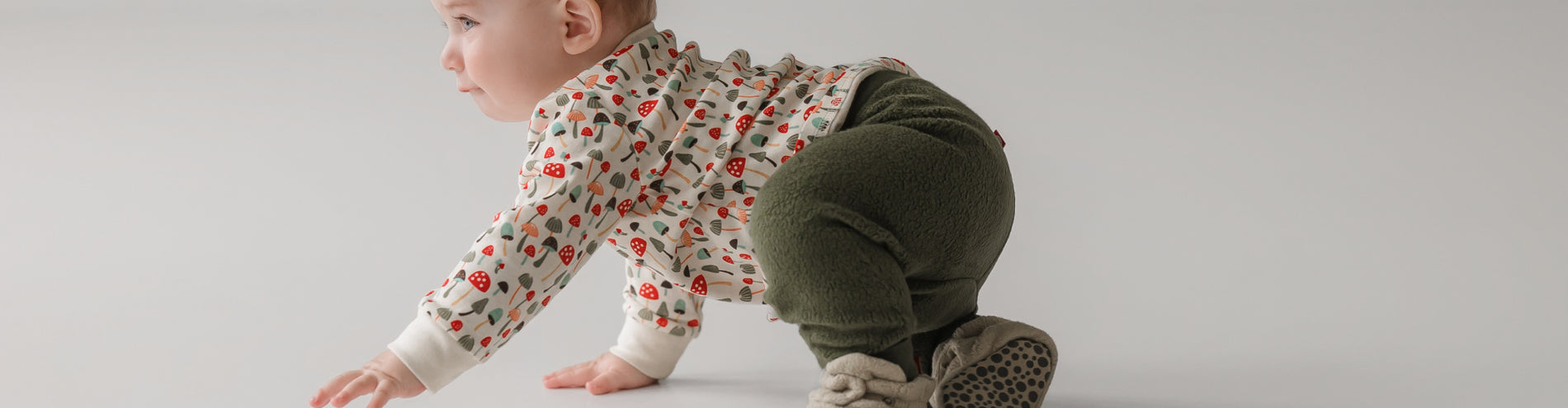 The secret to navigating this "in-between" weather lies in the technical difference between our fabric weights. Our Cozie Fleece booties, featuring a high-loft lining (70% cotton / 30% polyester), are engineered to trap heat while maintaining a soft, flexible environment for the foot. As the day warms up, transitioning to our 100% Organic Cotton booties ensures that moisture is wicked away from the skin, preventing the "sweaty foot" syndrome that often leads to a chill once the sun sets. This moisture management is critical for preventing skin irritation and keeping babies comfortable throughout long outings.