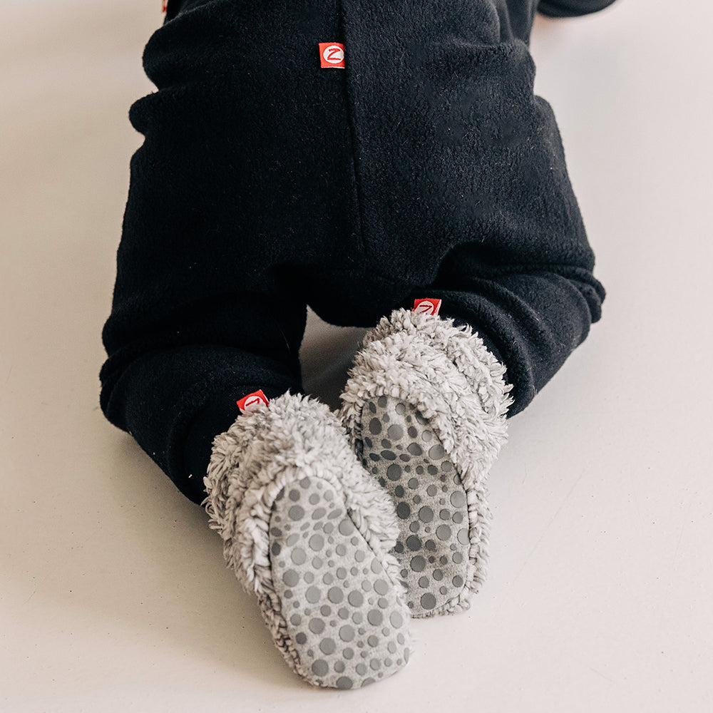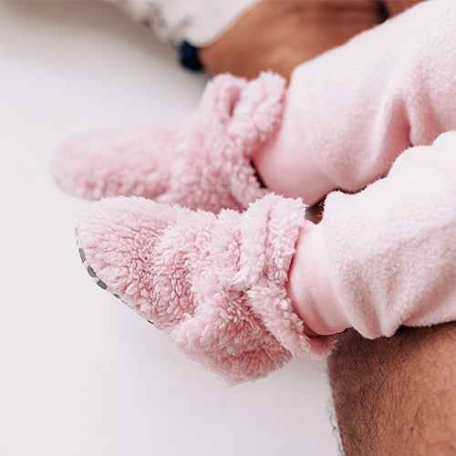 Our newest bootie style is made from plush, soft faux fur that's stylish, adorable and perfect for cooler months when Baby needs a little extra warmth. Our signature two-snap secure fit keeps them on little feet while a soft organic cotton interior lining makes them comfy for Baby. Grippers on the bottom are designed to help new walkers grip slippery floors during those momentous first steps. These Baby Pink colored booties are a perfect addition to your growing collection of Zutanos.